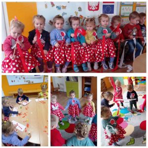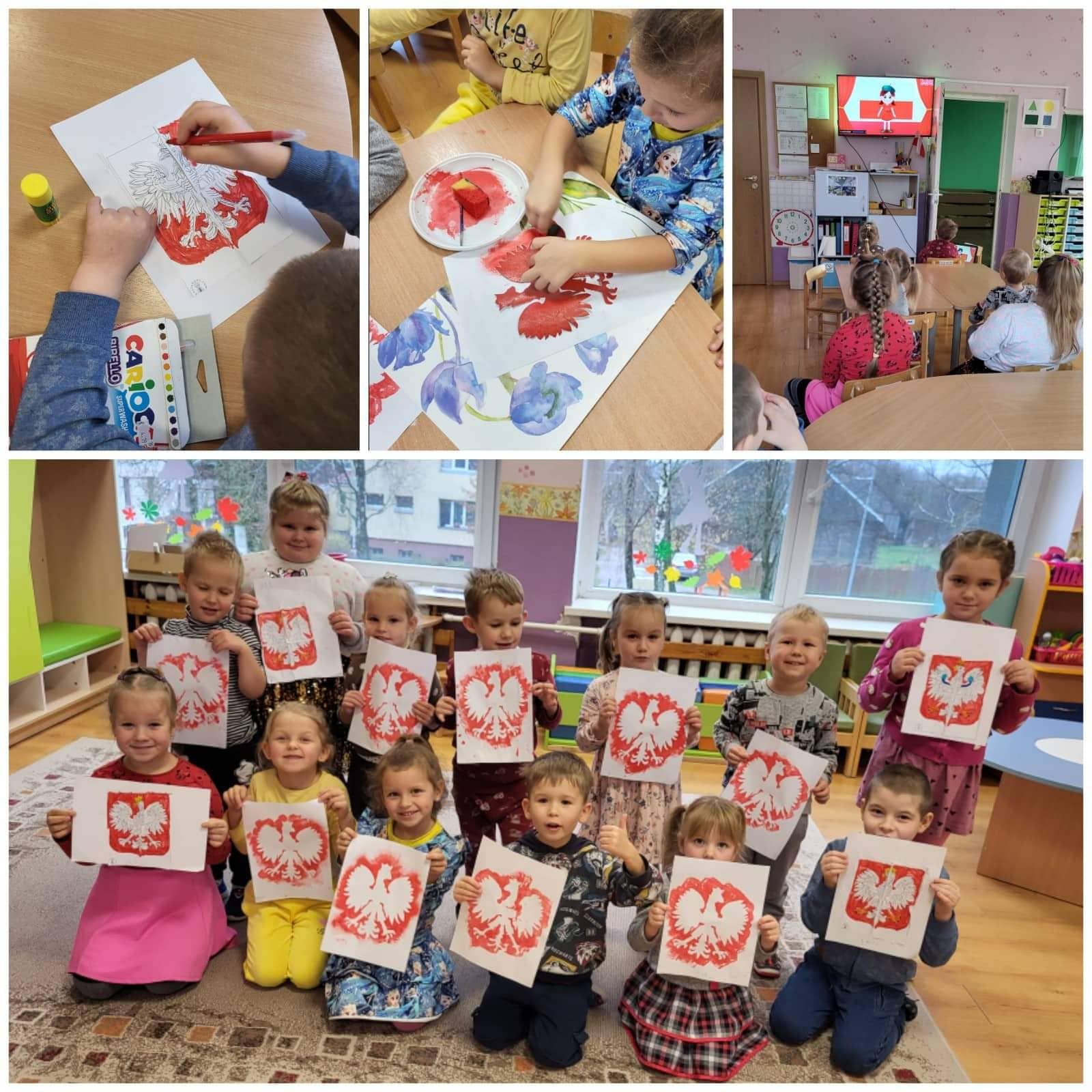 Ciekawą zabawą, która zaangażowała dzieci, była zabawa “Jedzie pociąg z daleka”, która przy okazji przypomniała o stolicy Polski. Także dzieciaki wesoło śpiewały piosenkę „Jesteśmy polką i  Polakiem”. Tego dnia przedszkolacy mieli za zadanie wykonanie pracy plastycznej pt. „Godło i flaga Polski”. Dzień, który przeżyliśmy dumnie i z uśmiechem na twarzy, na pewno przyczyni się do kształtowania patriotycznych postaw naszych małych przedszkolaków.