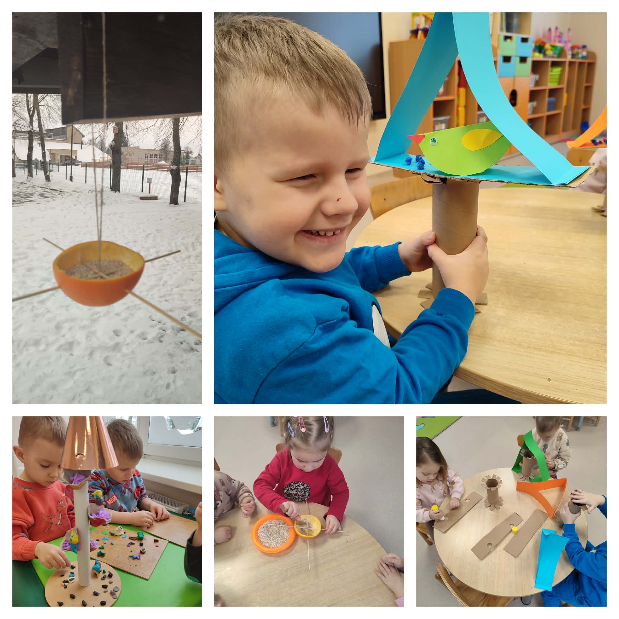 Sausio–vasario mėn. „Žirniukų“ ir „Boružėlių“ grupių vaikai kartu su mokytojomis vykdė akciją „Lesyklėlė paukščiams“. Grupių ugdytiniai iš pradžių aiškinosi, kokie paukščiai lieka žiemoti Lietuvoje, kaip jie maitinasi ir kur ieško maisto. Vėliau, pasidomėję ir išsiaiškinę šiuos dalykus, vaikai kūrė savo lesyklėles iš įvairių medžiagų. Vieni sukūrė lesyklėles iš popieriaus, kiti – iš antrinių žaliavų. Ugdytiniai noriai bendradarbiavo tarpusavyje, reiškė savo mintis apie paukščius ir jų namelius, klijavo bei konstravo pagal savo idėjas.