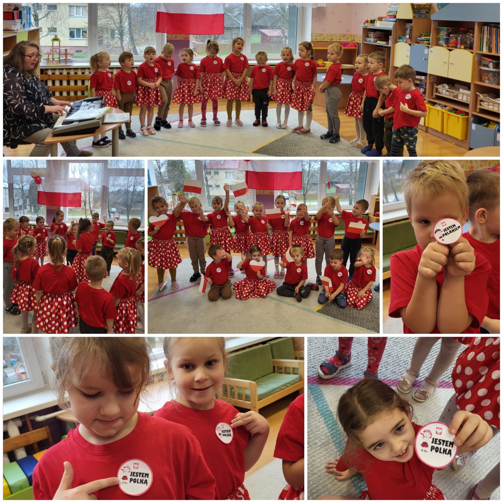 W naszym przedszkolu w dniu 11 Listopada obchodziliśmy Święto Niepodległości Polski. Z tej okazji dzieci uroczyście świętowały ten wyjątkowy dla Nas – Polaków dzień. Dzieci z grupy Krasnoludki od samego rana szczerze pracowały nad robotkami tematycznymi „11 listopada”. , Dzięki filmikom edukacyjnym zapoznały się również z historią Polski i tego święta. W części świątecznej wysłuchaliśmy hymn państwowy Polski „Mazurek Dąbrowskiego”, pamiętając przy tym o zachowaniu należytej postawy. Zaśpiewaliśmy legendarną piosenkę „Przybyli ułani”. Recytowaliśmy wiersze, tańczyliśmy taṅce patriotyczne oraz najbardziej lubiany taniec dzieci – „Jesteśmy polką i Polakiem”.