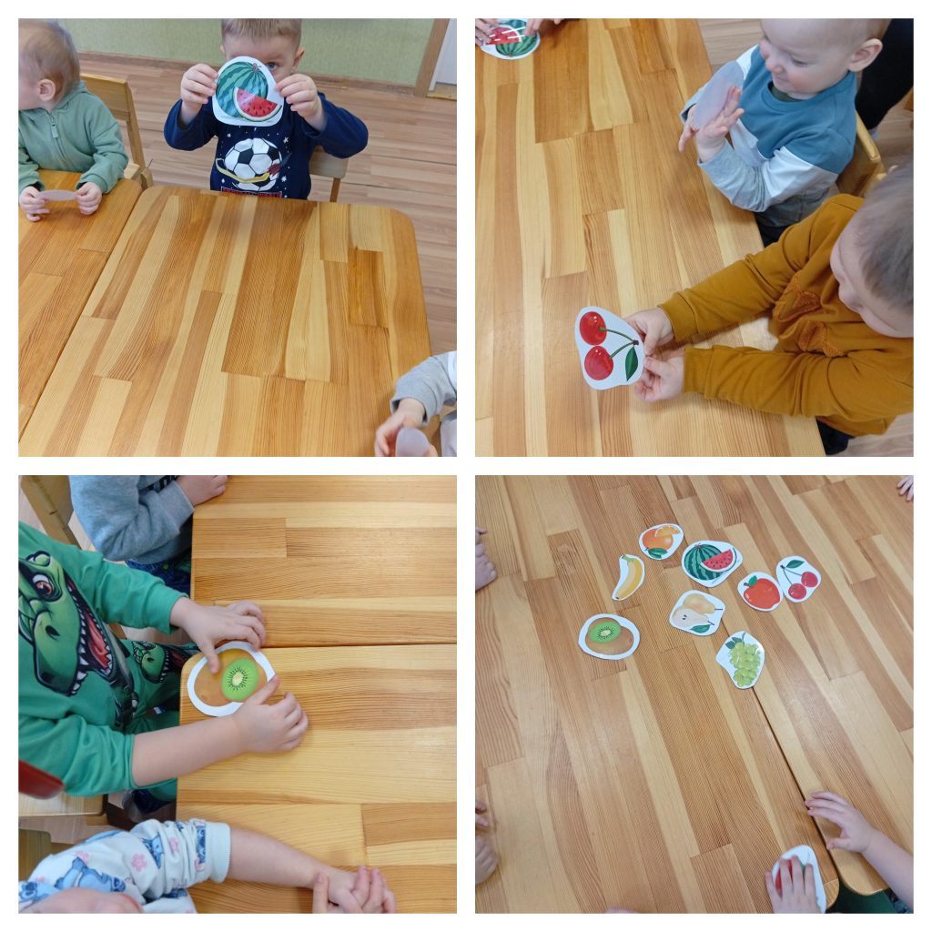 Užsiėmimo metu vaikai susipažino su įvairiais vaisiais, išmoko jų pavadinimus, sužinojo kiekvieno vaisiaus naudą žmogui. Didelį vaikų susidomėjimą sukėlė kortelės su pavaizduotais vaisiais. Apžiūrėję korteles ir išgirdę klausimą, vaikai turėjo surasti tinkamą atsakymą.