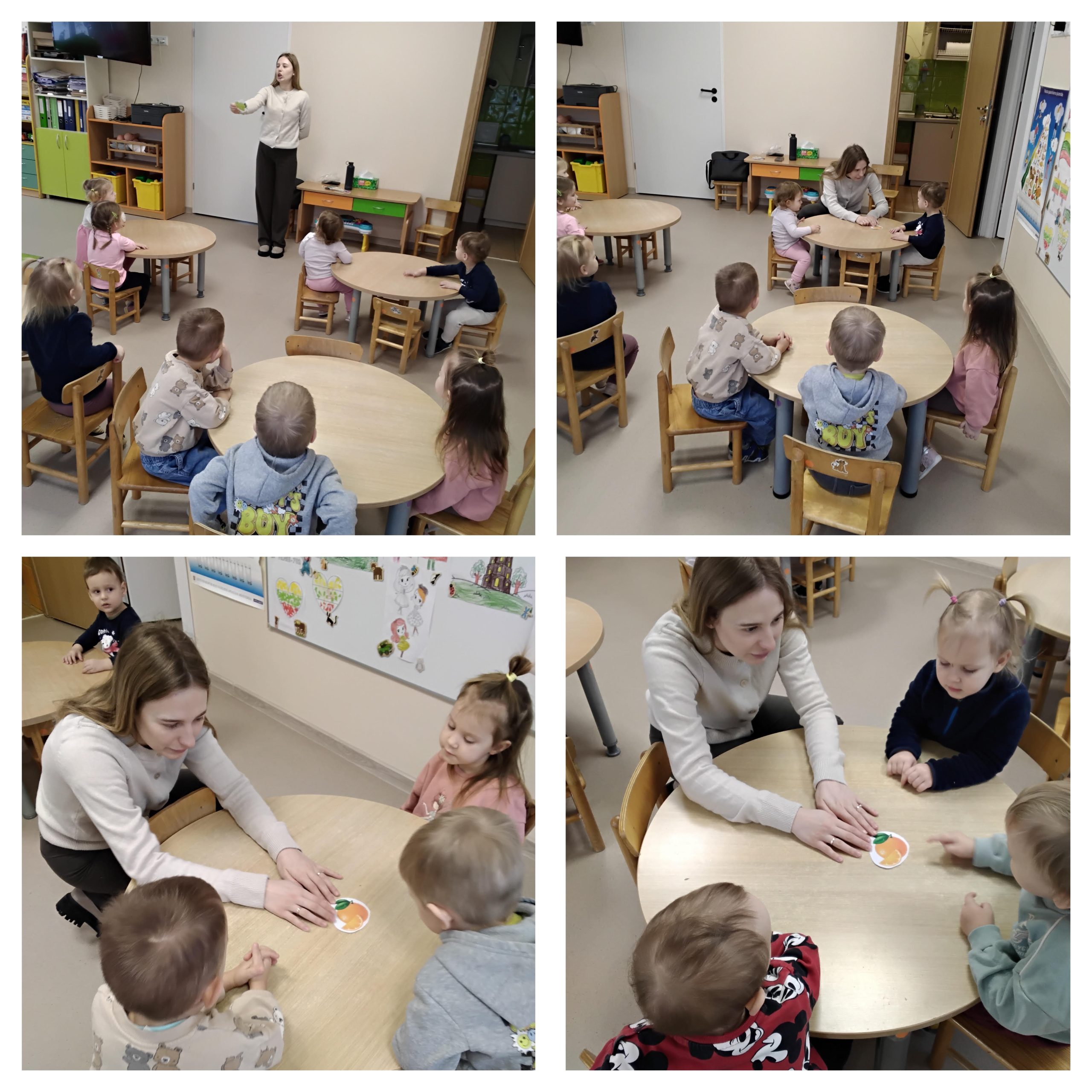 Užsiėmimo metu vaikai susipažino su įvairiais vaisiais, išmoko jų pavadinimus, sužinojo kiekvieno vaisiaus naudą žmogui. Didelį vaikų susidomėjimą sukėlė kortelės su pavaizduotais vaisiais. Apžiūrėję korteles ir išgirdę klausimą, vaikai turėjo surasti tinkamą atsakymą.