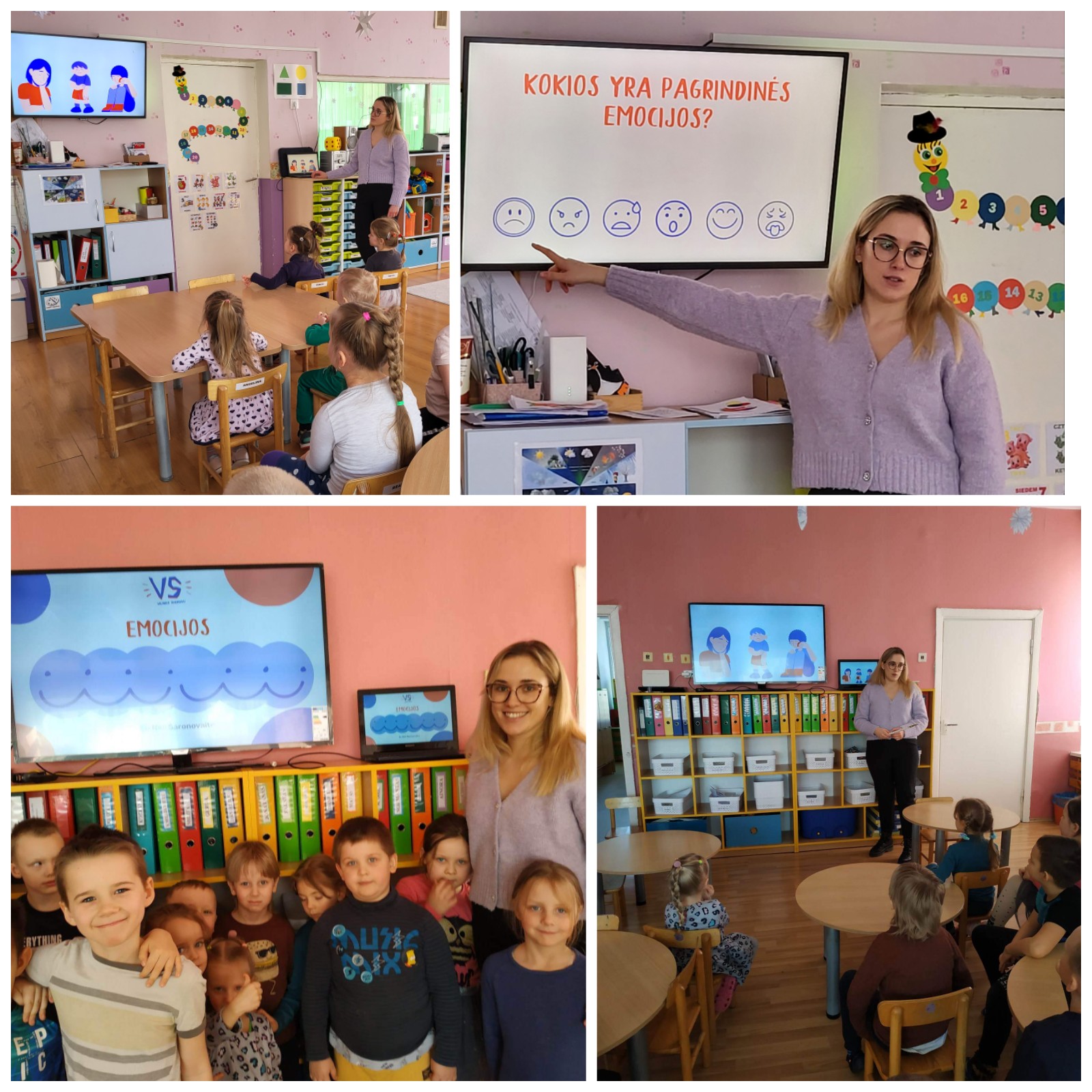 Vasario 28 d. ,,Boružėlių” ir”Nykštukų” grupių  ugdytinius aplankė Visuomenės sveikatos biuro specialistė Neli. Susipažino ugdytinius su emocijomis. Užsiėmimo metu vaikai mokėsi  atpažinti teigiamas ir neigiamas emocijas  bei  kalbėti apie jas. Specialistė pabrėžė, kad padėti vaikams geriau pažinti ir apibūdinti emocijos padeda piešimas. Didelį susidomėjimą sukėlė  emocijų  vaidinimas, kuris padėjo vaikams suprasti, kad mūsų emocijos keičiasi.