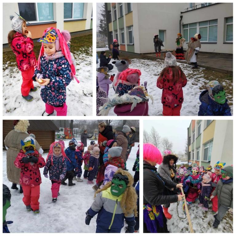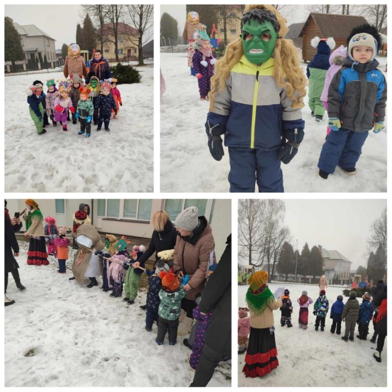 W naszym przedszkolu są pielęgnowane tradycje ludowe, dlatego też nie mogło zabraknąć świętowania Zapustów. W tym roku obchodziliśmy je 13 lutego. Przed okresem Wielkiego Postu jest to ostatni dzień karnawału. Dzieci ze żłobka – przedszkola w Kabiszkach znają ten dzień jako porę wypędzania z podwórka Panią Zimę. Tego roku świętowaliśmy wspólnie z Centrum Kultury Niemenczyn oddziałem w Kabiszkach. Administrator oddziału Aliona Buchovskienė przebrana w Konopiastego, kierowniczka artystyczna Katarzyna Parszuta w roli Gospodyni i bibliotekarka Centralnej Biblioteki rejonu Wileńskiego filii w Kabiszkach Teresa Sokołowska przebrana w Słoninowego zabawili naszych dzieci swoim programem.