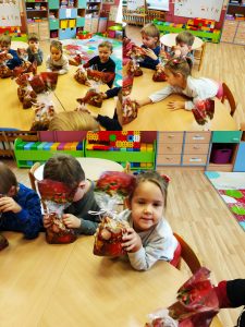 Dzisiaj nasze przedszkole odwiedził bardzo miły i długo oczekiwany gość. Miał czerwony strój, długą, białą brodę, dźwigał na plecach bardzo ciężki worek, a w nim prezenty. To nie mógł być nikt inny tylko MIKOŁAJ. Niezwykle wesoły Święty Mikołaj obdarował wszystkie dzieci słodkimi prezentami. Na twarzach dzieci malowała się wielka radość a także nadzieja na kolejne o wiele dłuższe spotkanie, kóre zapowiada się 19 grudnia.