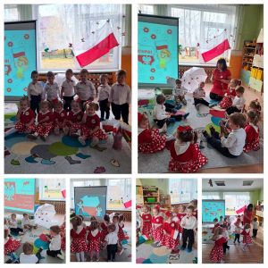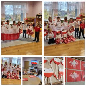 Dzień 11 listopada to jedna z najważniejszych dat w historii Polski- Narodowe Święto Niepodległości. Z tej okazji dzieci z grupy „Krasnoludki” i „Pszczółki” uroczyście świętowały ten wyjątkowy dla Polaków czas.