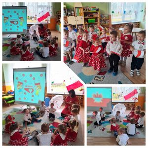 Dzieci poznawały symbole narodowe Polski: godło, flagę i hymn. Podczas występu dzieci recytowały wiersze patriotyczne, śpiewały pieśń legionową ,,Przybyli ułani” i dużym zapałem tańczyły „Krakowiaka”. Uroczystość miała na celu rozwijanie i pielęgnowanie, wśród wychowanków naszego przedszkola, polskiej kultury i tradycji.
