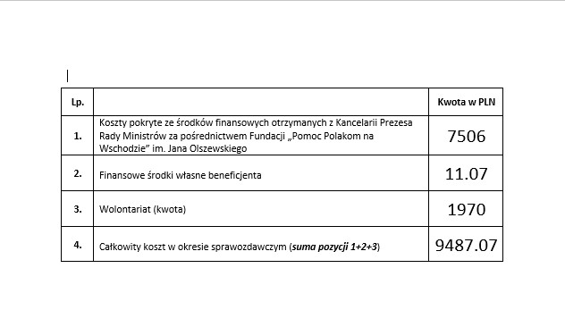 „Projekt finansowany ze środków Kancelarii Prezesa Rady Ministrów w ramach konkursu Polonia i Polacy za Granicą 2022”