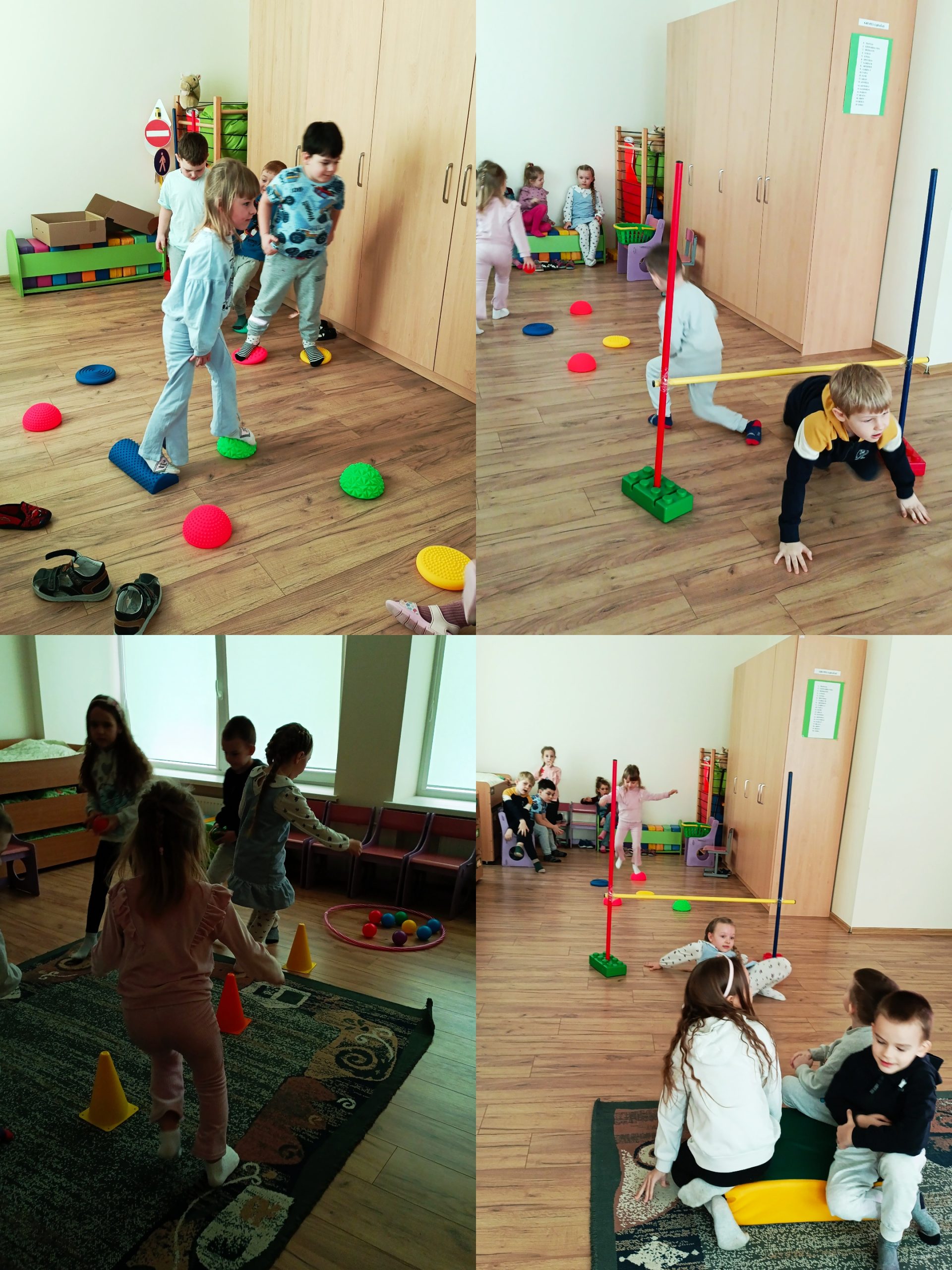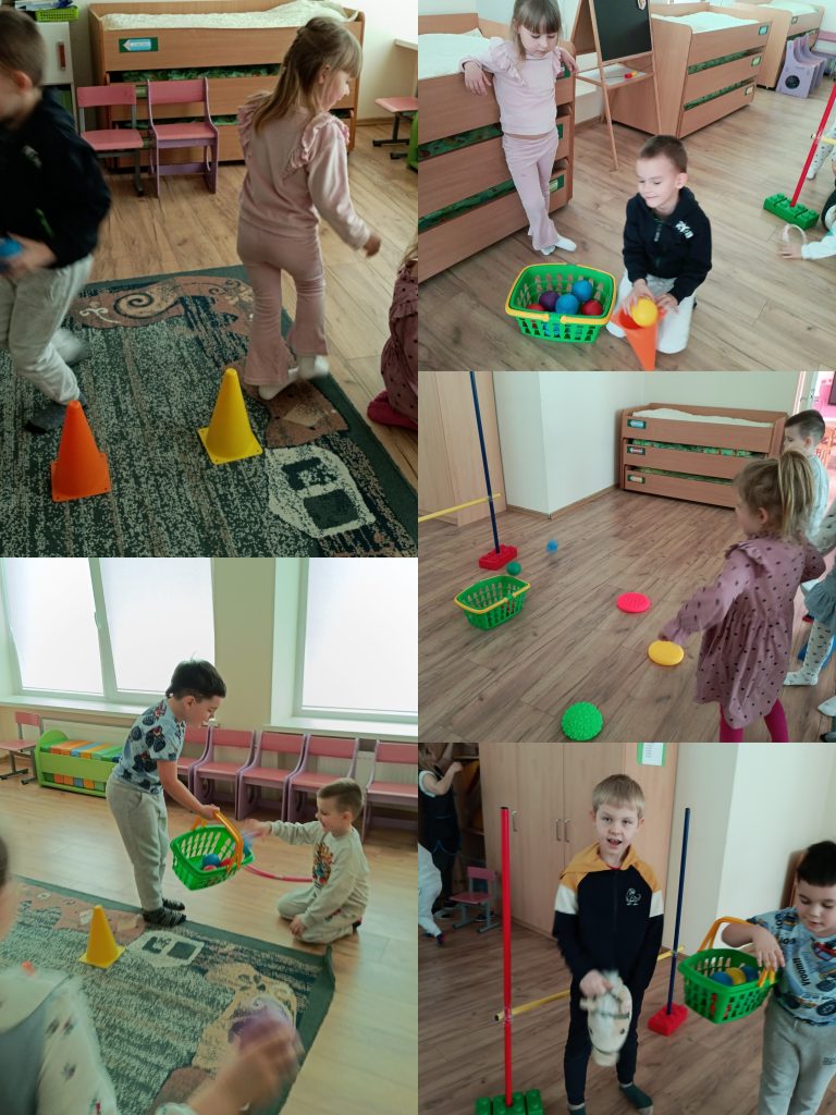 Veikla prasidėjo linksma mankštele. Skanduodami šukį: „Mums darželyje smagu būryje gerų draugų. Esam vikrūs ir linksmi – pasportuosime visi“, vaikai parodė savo pasiruošimą žaidimams. Kad žaidynės vyktų sklandžiai, mokytoja supažindino vaikus su taisyklėmis.