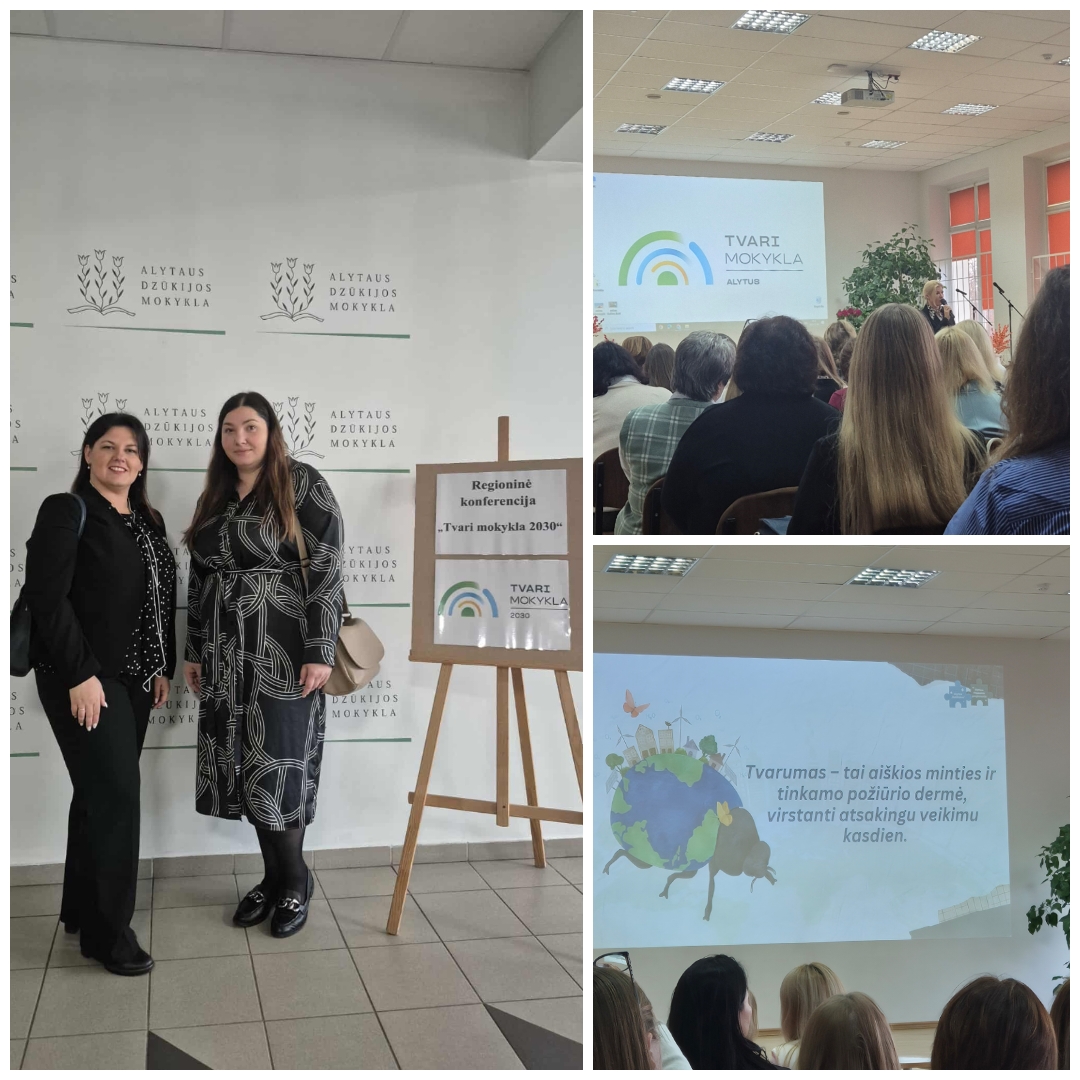 Lapkričio 6 dieną mūsų vaikų lopšelio-darželio direktorė kartu su kolege iš Vilniaus r. Avižienių vaikų lopšelio-darželio dalyvavo regioninėje konferencijoje „Tvari mokykla 2030“, kuri vyko Alytaus Dzūkijos mokykloje ir subūrė pedagogus, vadovus bei švietimo ekspertus iš įvairių Lietuvos regionų. Renginį organizavo Lietuvos neformaliojo švietimo asociacija, siekdama skatinti pokyčius ugdymo įstaigose ir įkvėpti bendruomenes kryptingai judėti tvarumo link.