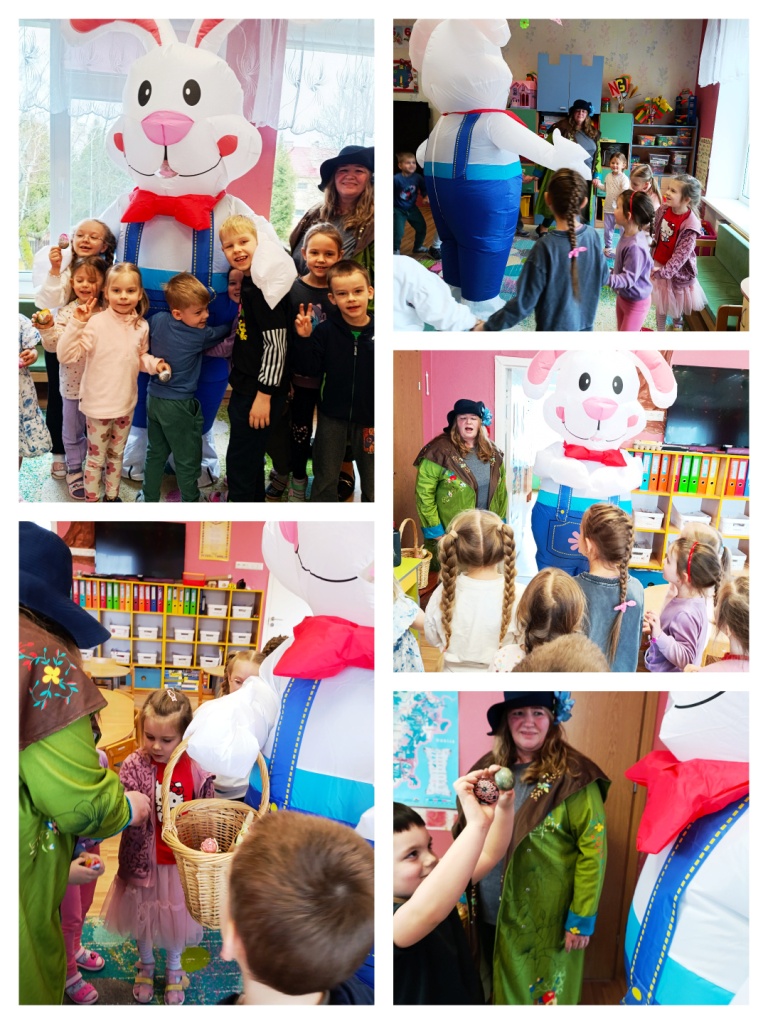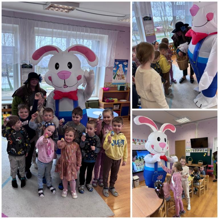 Iškart po Velykų lopšelyje-darželyje vaikų laukė smagi staigmena – grupes aplankė Velykinis kiškutis kartu su Velykų boba. Svečiai atsinešė ne tik gerą nuotaiką, bet ir daug smagių veiklų. Vaikai kartu žaidė įvairius žaidimus, dalyvavo linksmose užduotyse, šoko ir dainavo. Kiškutis ir Velykų boba kūrė šventinę atmosferą, skatino vaikus judėti, juoktis ir džiaugtis buvimu kartu.