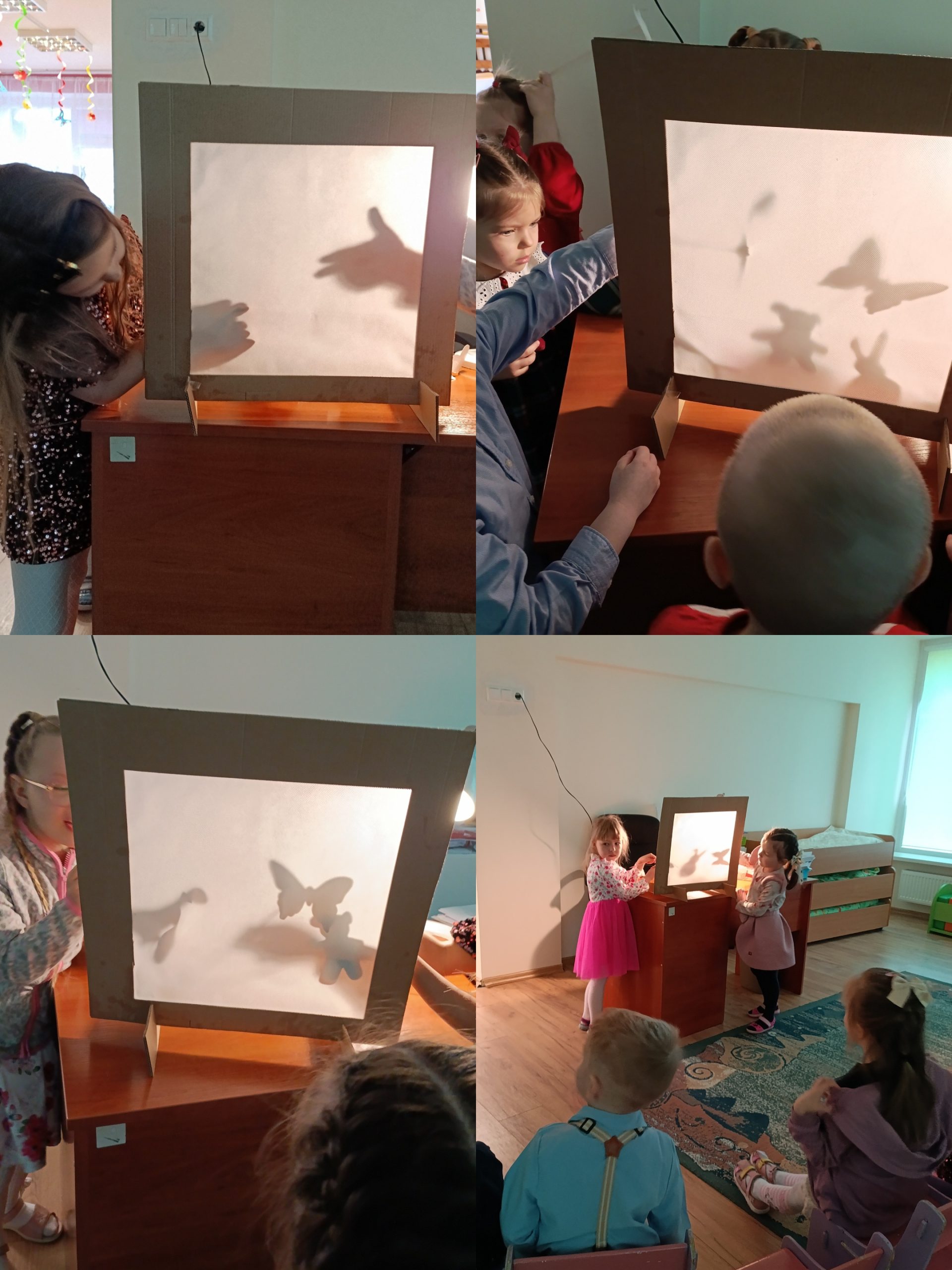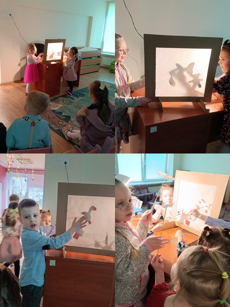Kovo 16–19 d. „Boružėlių“ grupės ugdytiniai, padedami pedagogų, pasinėrė į tikrą šešėlių teatro atmosferą. Pasitelkę vaizduotės žaismą, atvėrėme duris į paslaptingą meno pasaulį. Kūrėme pasirinktų veikėjų situacijas ir jas vaidinome. Veiklos metu vaikai ne tik susipažino su šešėlių teatru, bet ir ugdė gebėjimą improvizuoti pasirinktus kūrinius. Rankyčių pagalba vaizdavome medžius, gyvūnus, simbolius.