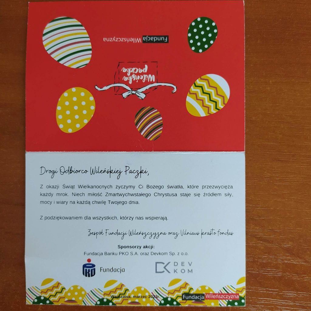 W piątek 7 kwietnia do przedszkola w Kabiszkach zawitał zajączek z prezentami dla wszystkich dzieciaków. Tym razem były to świąteczne wielkanocne życzenia, słodycze oraz książeczki od zespołu fundacji ,,Wileńszczyzna“ tak zwana ,,Wileńska paczka“.  Dzieci niezmiernie się cieszyły z niespodzianki, która sprawiła ona wiele radości dla wszystkich wychowanków przedszkola.