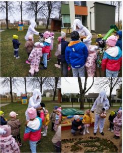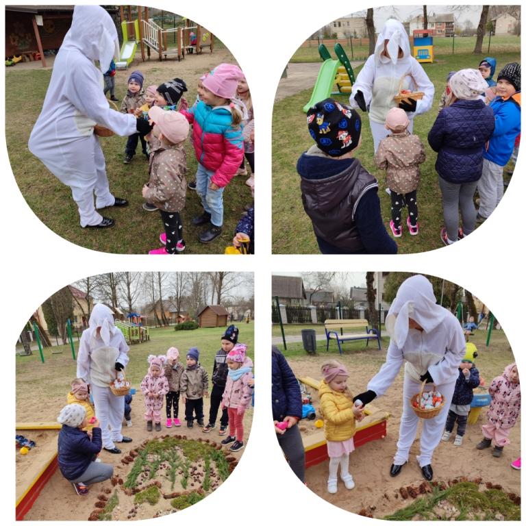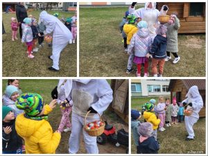 Do ich towarzystwa dołączył się zajączek wielkanocny, ktory przyniósł dzieciom w prezencie słodycze. Dzieci chętnie bawiły się z gościem.