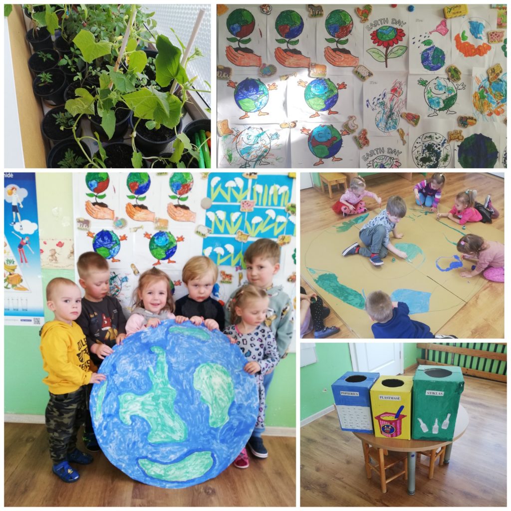 Visą savaitę vaikai aktyviai dalyvavo pokalbiuose apie tai, kaip reikia saugoti Žemę. Vaikai savo darbeliais, piešiniais pasveikino Žemę. Rūšiavo atliekas, stebėjo filmus apie ekologiją, šoko, dainavo, deklamavo eilėraštukus. Vaikai pagamino šiukšlių rūšiavimo konteinerius. Ruošėsi šventei ,,Žemės diena“.